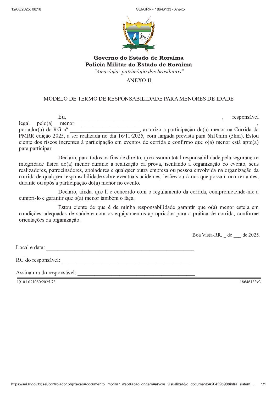 ANEXO II – MODELO DE TERMO DE RESPONSABILIDADE PARA MENORES DE IDADE (SEI nº19386783).