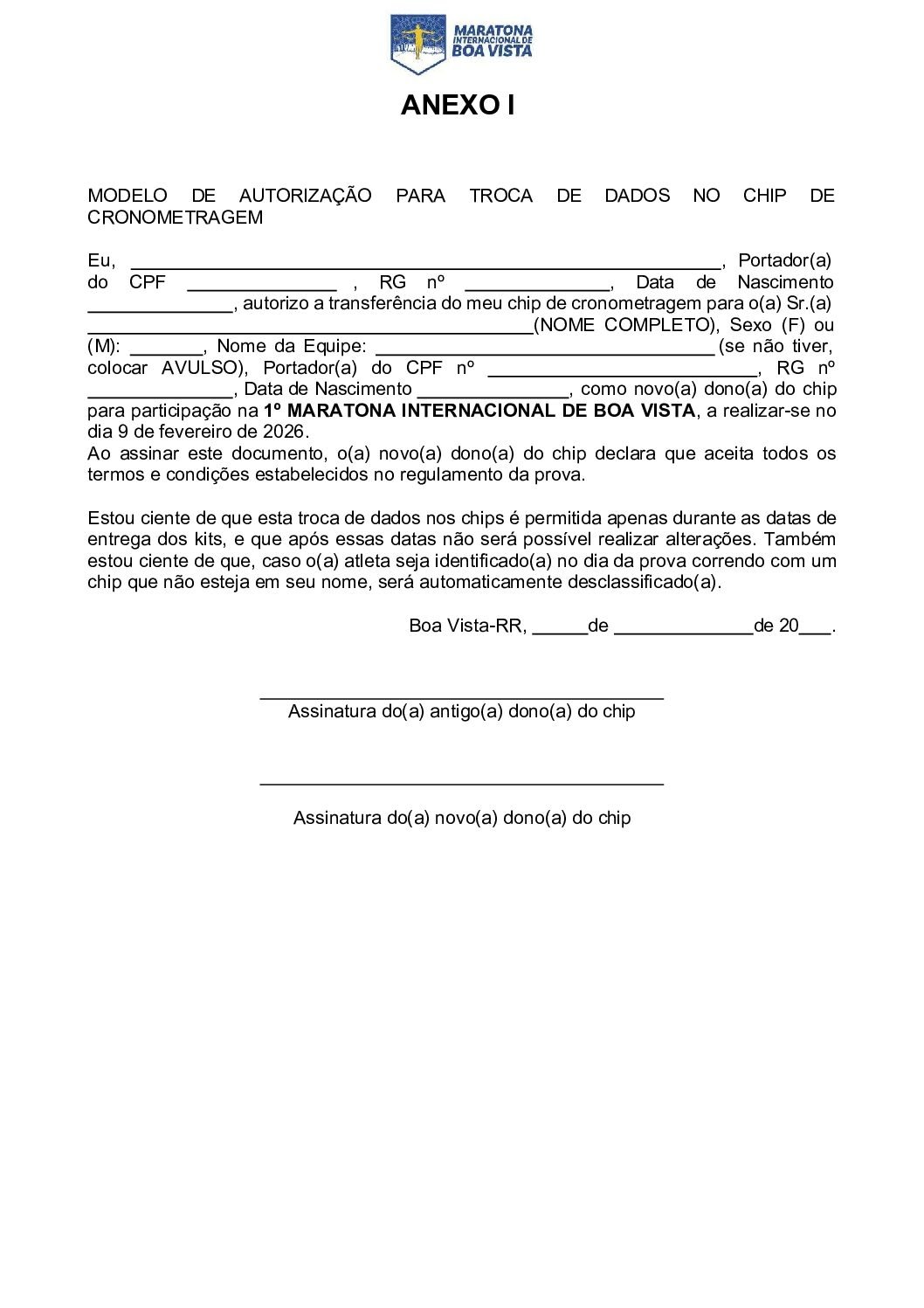 COMISSÃO ORGANIZADORA – MARATONA INTERNACIONAL DE BOA VISTA